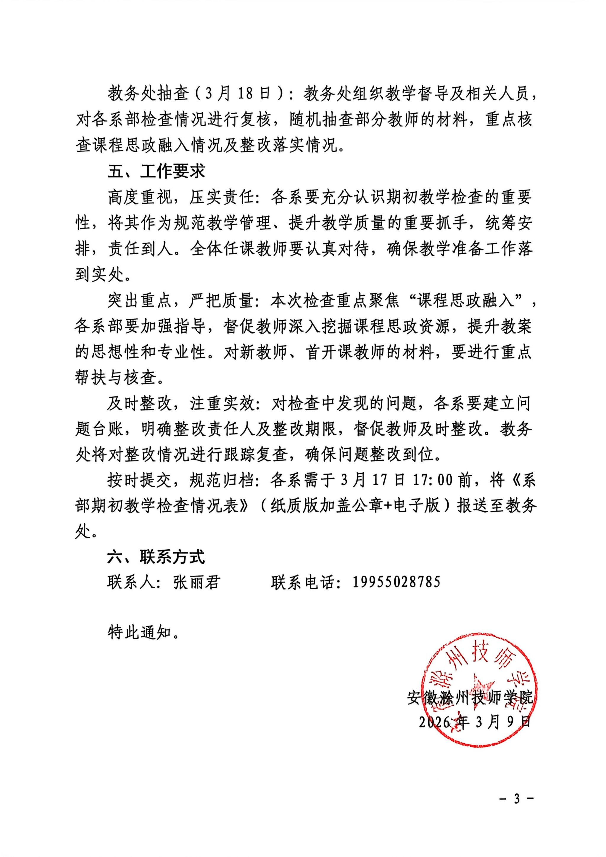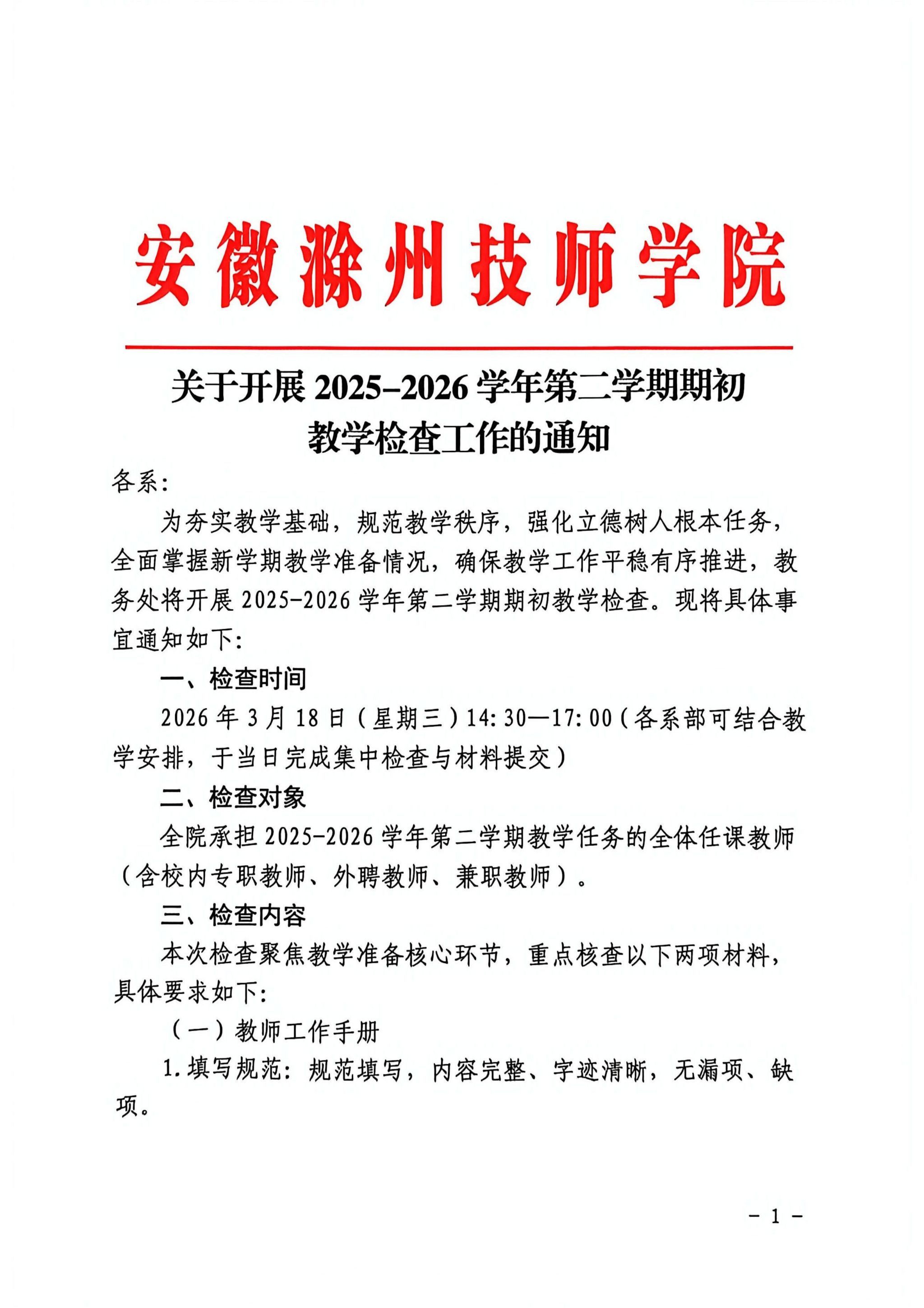 关于开展2025-2026学年第二学期期初教学检查工作的通知