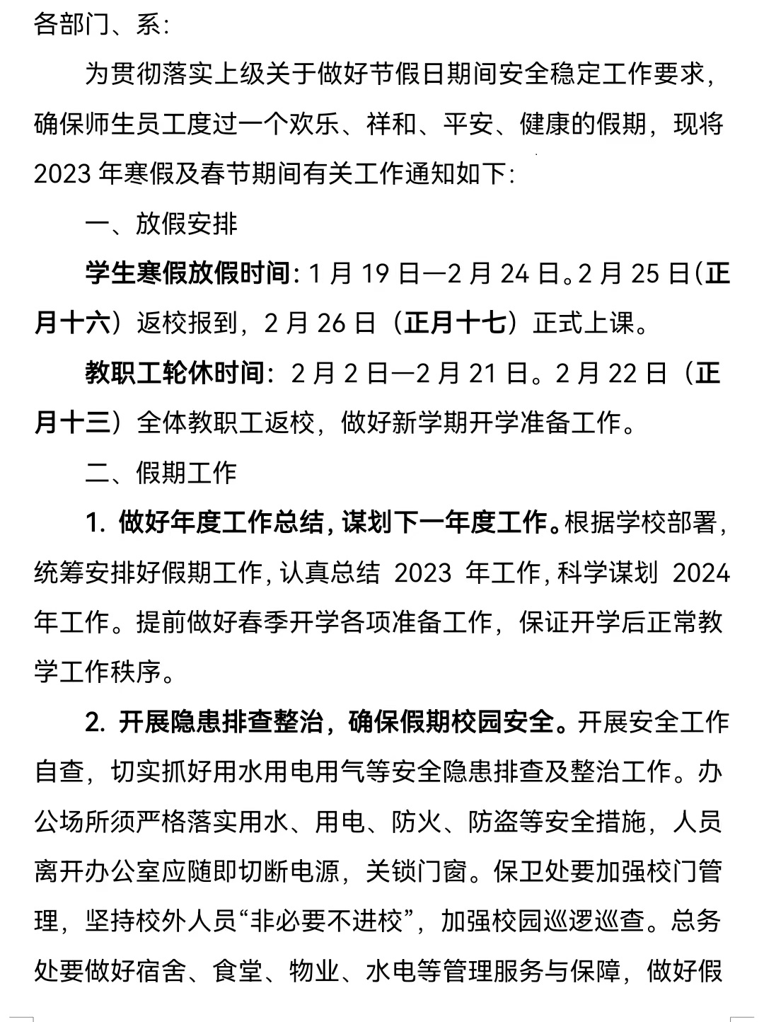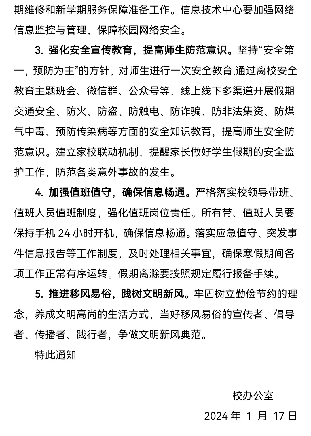 关于做好2024年寒假及春节期间有关工作的通知