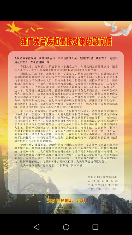 致广大官兵和优抚对象的慰问信