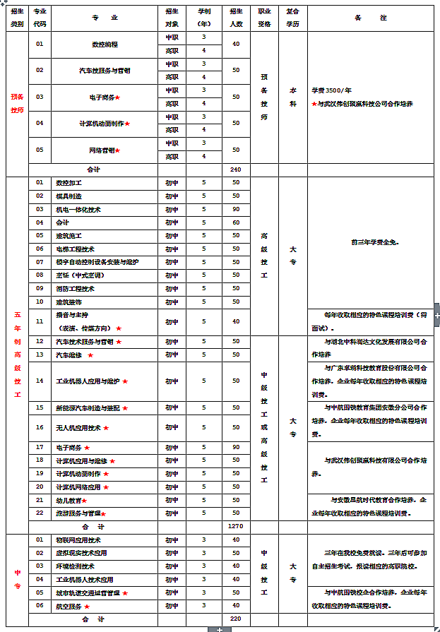 三、专业设置:五年制高职、预备技师、五年制高级技工、中专