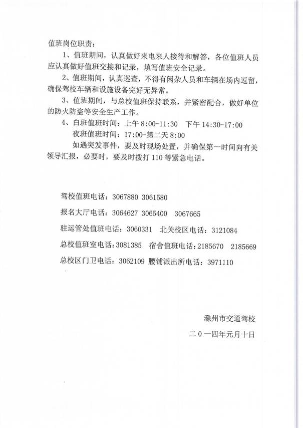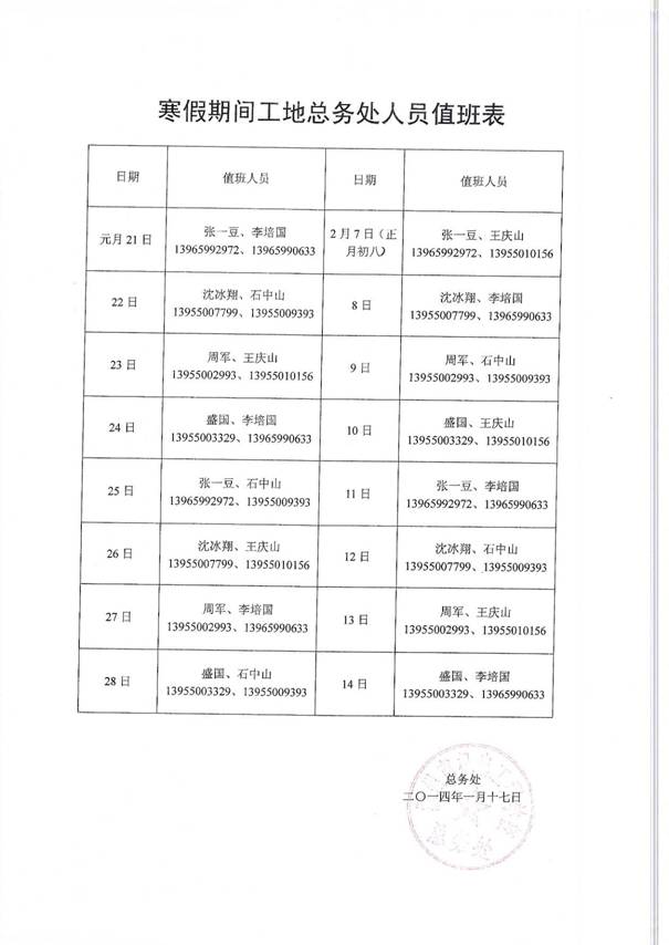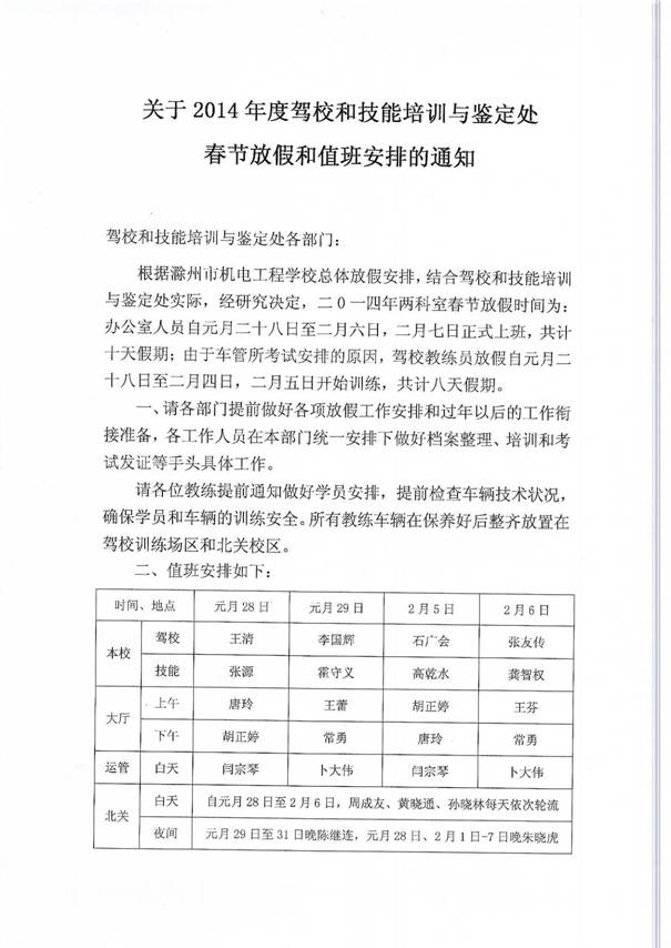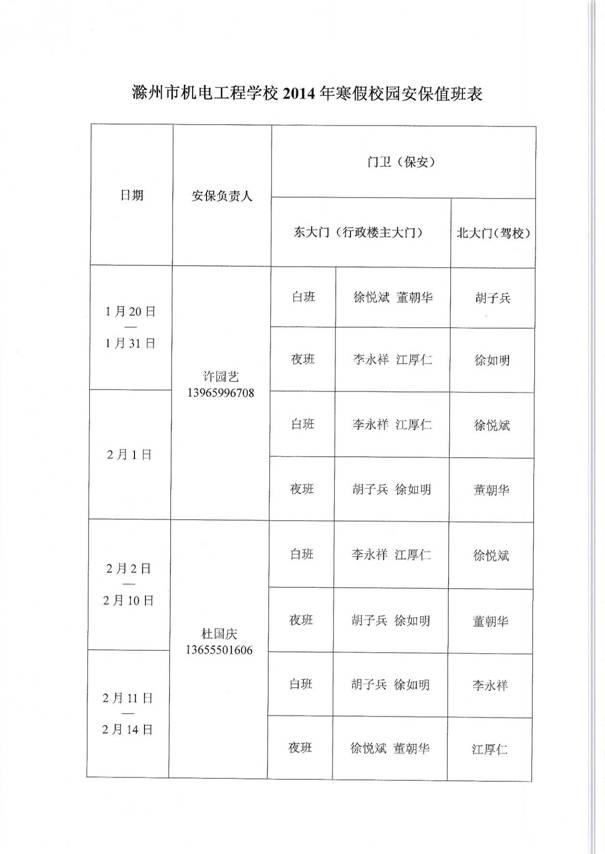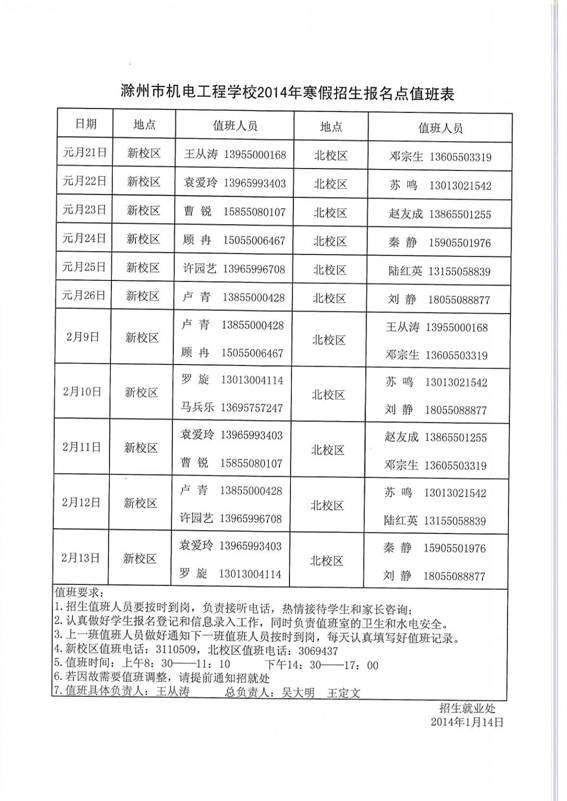 滁州市机电工程学校招生就业处等四部门寒假值班表