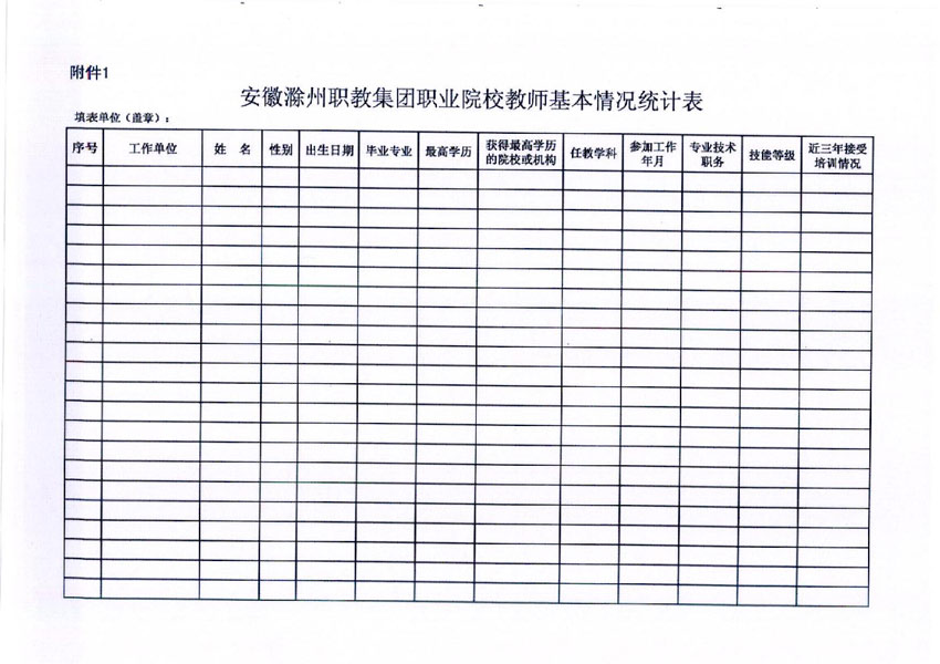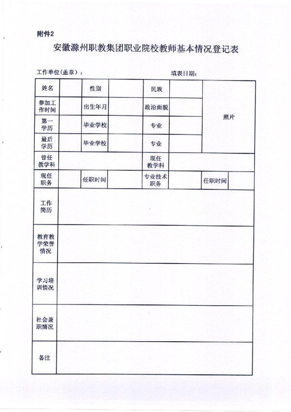 点击可下载表格:安徽滁州职教集团职业院校教师基本情况登记表.xls