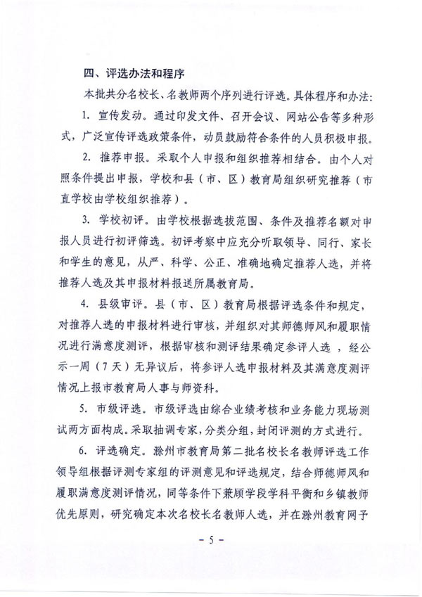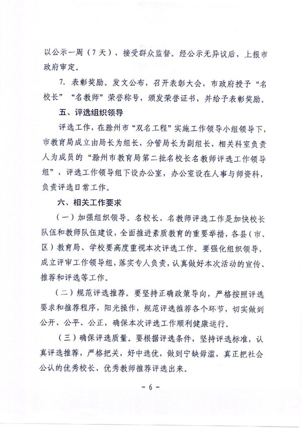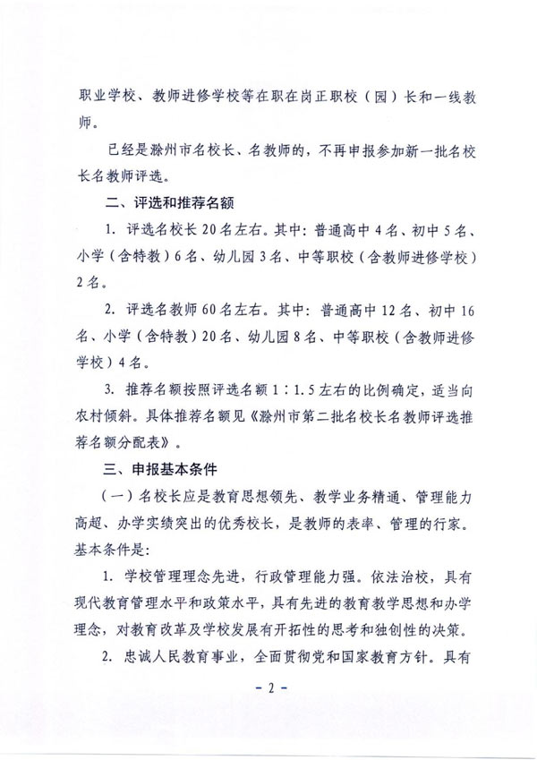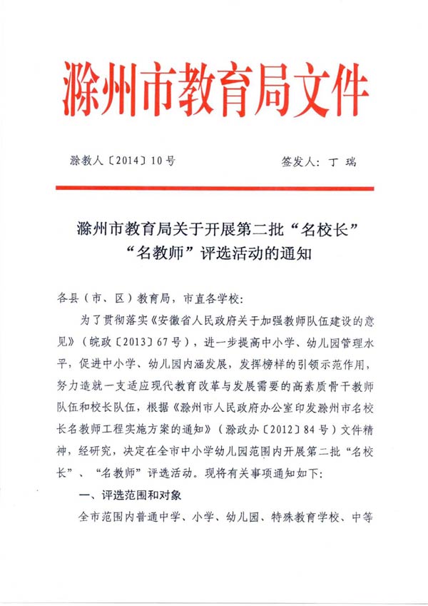 滁州市教育局关于开展第二批“名校长”“名教师”评选活动的通知