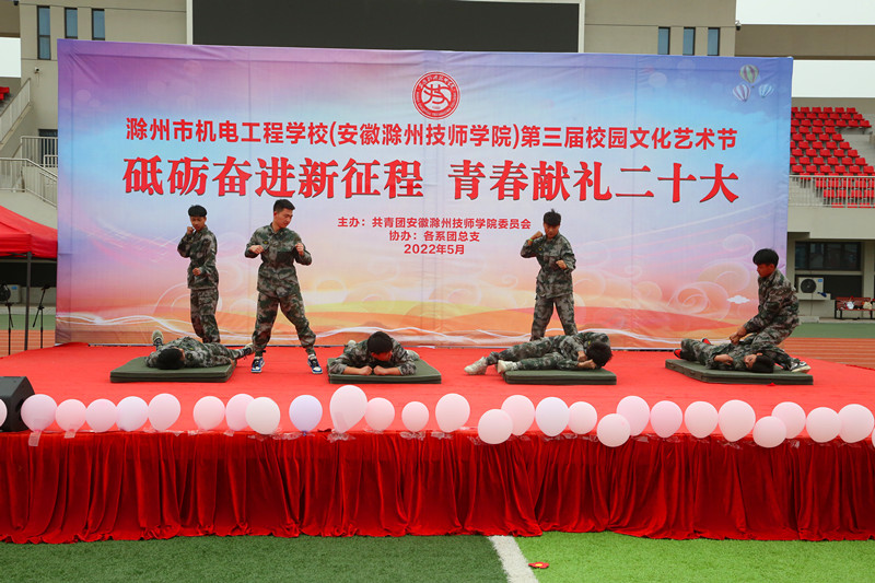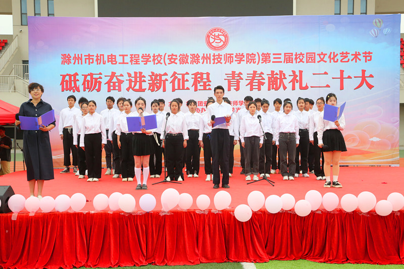 5月18日下午,学校“砥砺奋进新征程,青春献礼二十大”文艺汇演在操场如约而至。校党委书记余君琳、校党委副书记、校长湛承鲲、党委委员、副校长卢万祥、王清、各系部处室负责人、学生代表一同观看了演出。