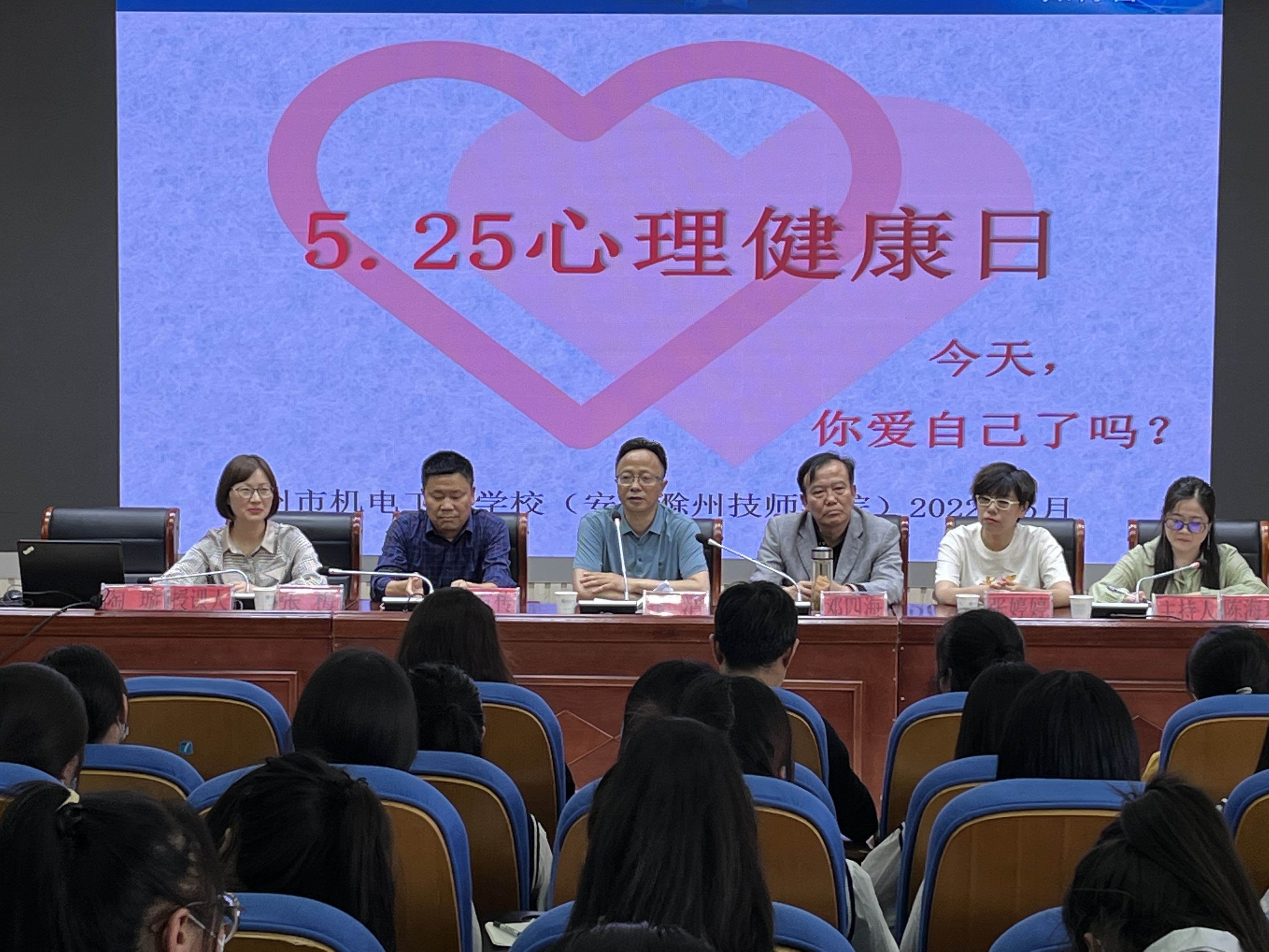 为加强班主任队伍建设,进一步提升班主任德育管理水平,充分发挥出班会课德育载体的重要作用,展示师生良好的精神面貌和综合素质,5月20日下午,由陈海珍名班主任工作室举办的《5·25心理健康教育》班会观摩课在土木楼三楼报告厅顺利举行。校党委委员、副校长王清,学生处处长邓四海,团委书记张婷婷,保卫处处长张友传,社会文化艺术系党支部书记张梅出席活动开幕式,夏美银名班主任工作室全体成员、相关班主任以及全场150余名同学参加了活动。活动由陈海珍主持。