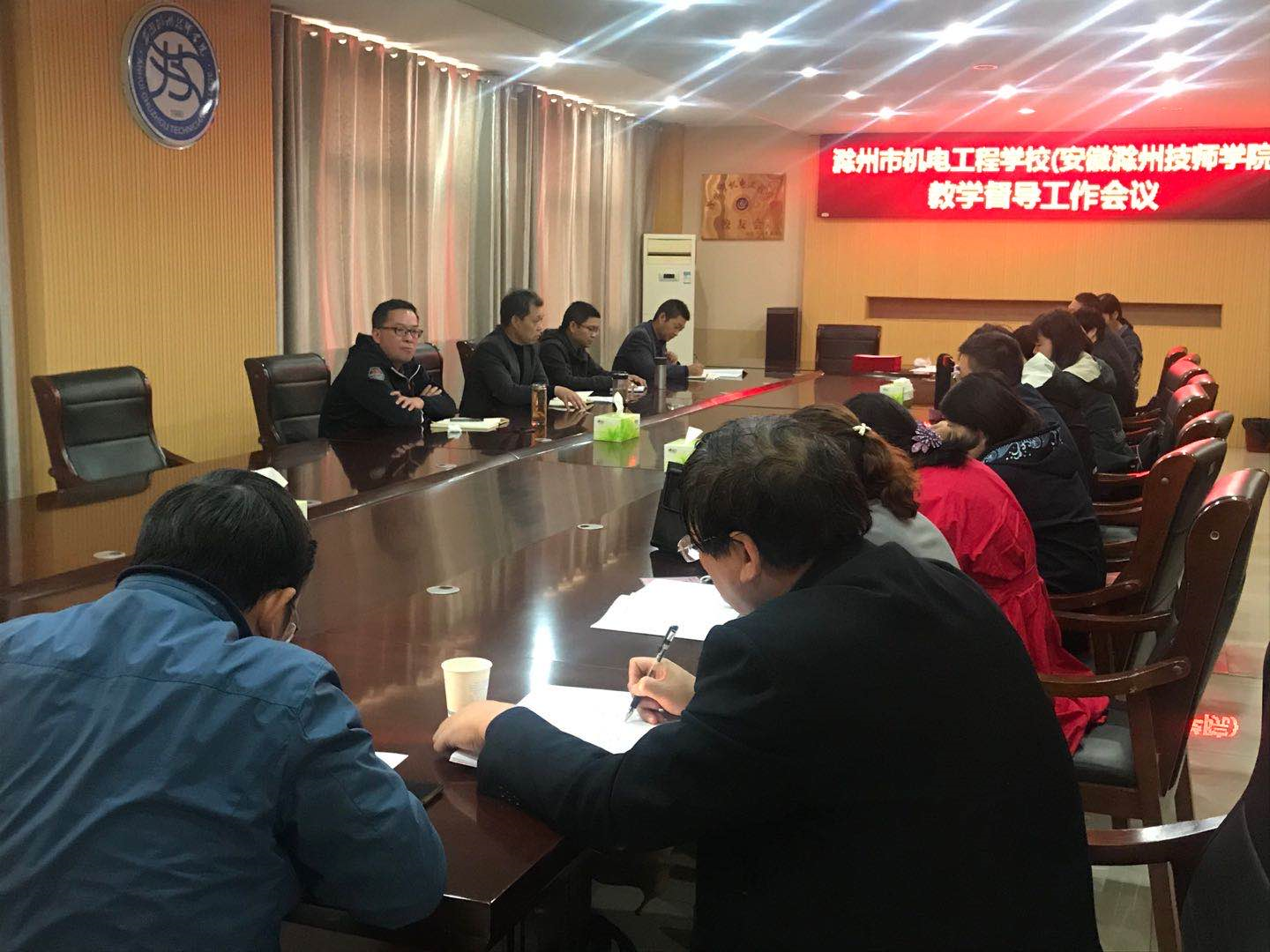 会上,王鑫宣读了本次选聘的兼职督导员名单,王金陵带领大家共同学习《滁州市机电工程学校(安徽滁州技师学院)教学工作督导管理办法》,并对专、兼职督导员进行任务分工。