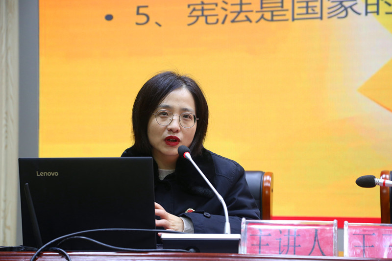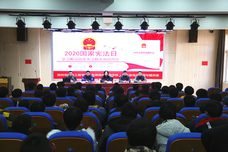 为深入贯彻习近平总书记关于宪法学习宣传教育的系列重要指示精神,增强全社会的宪法意识,弘扬宪法精神,加强宪法实施,12月4日,我校在土木楼三楼报告厅举办了宪法知识专题讲座,滁州市琅琊区人民检察院检察官王玉娟担任主讲。学校办公室、保卫处、机电系师生共120余人到场聆听了本次讲座。