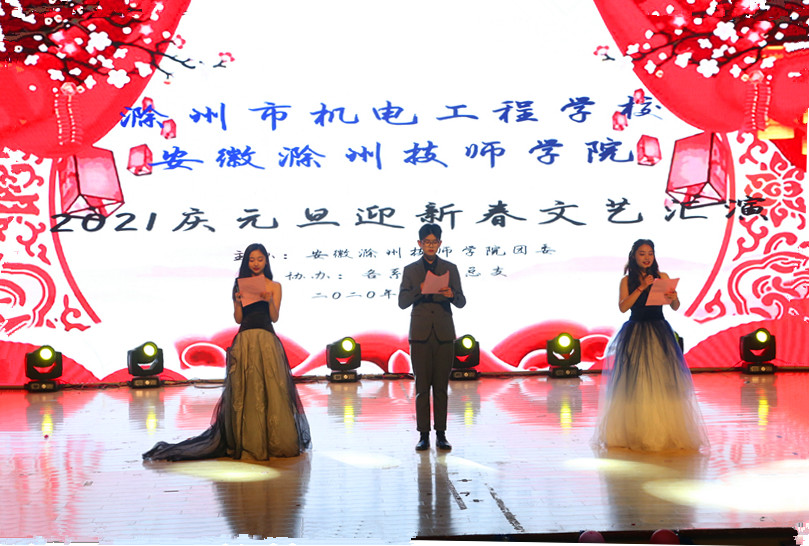 12月21日下午,学校2021庆元旦迎新春文艺汇演在滁州职业技术学院大礼堂如约而至。校党委书记、校长汪上,党委副书记、纪委书记张福兴,党委委员、副校长余君琳、潘海波,以及各职能处室、各系部主要领导与全场近千名师生共同观看了演出。