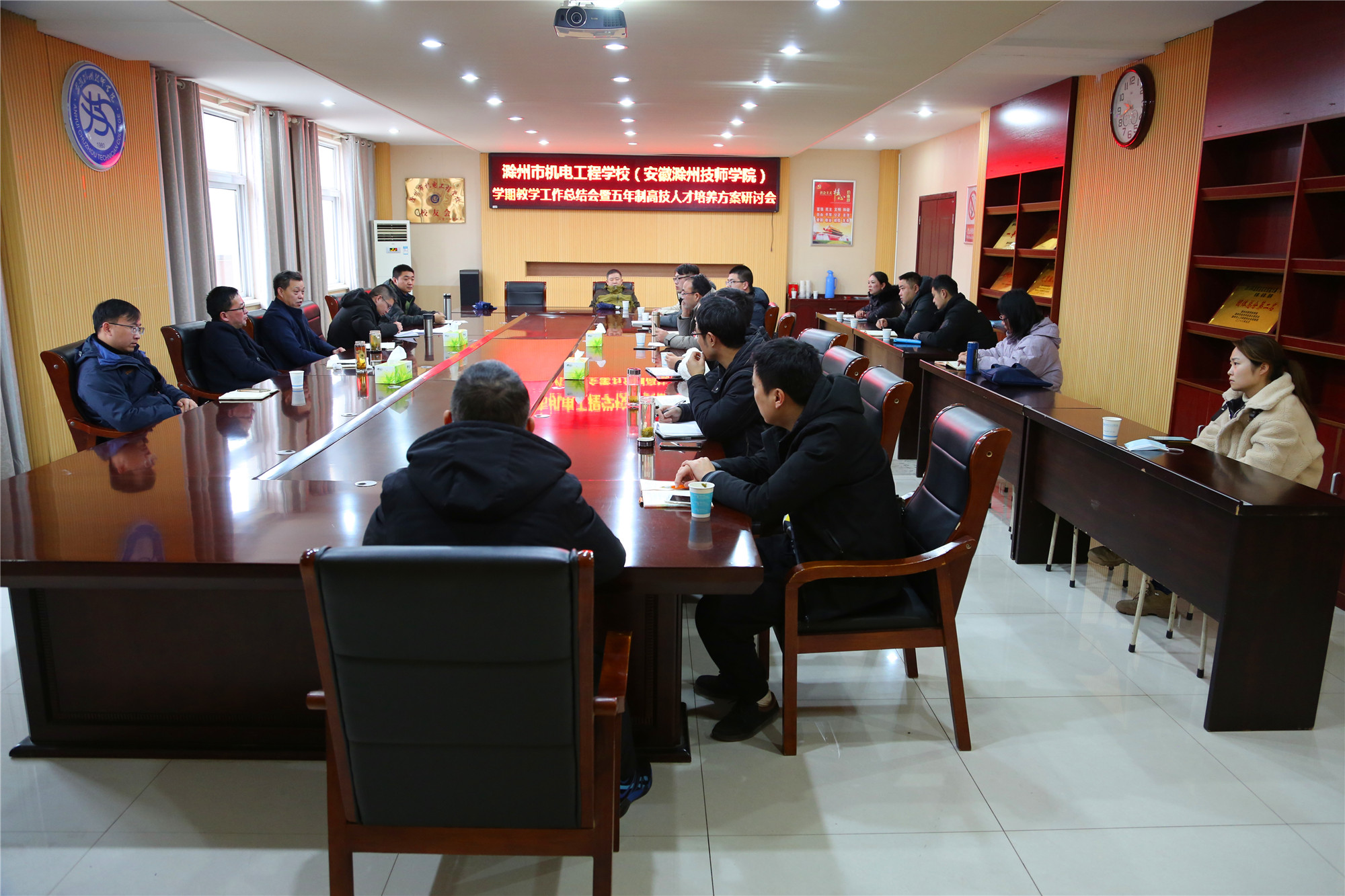 为深化教育教学改革,全面提高专业建设水平,做好我校五年制高技人才培养方案的修订工作,进一步提升教学水平和质量,1月25日上午,学校在综合楼306会议室召开了教学工作总结会暨五年制高技人才培养方案研讨会。校党委委员、副校长湛承鲲、教务处相关人员、各系部主任、副主任、教学秘书及合作企业负责人参加了会议。