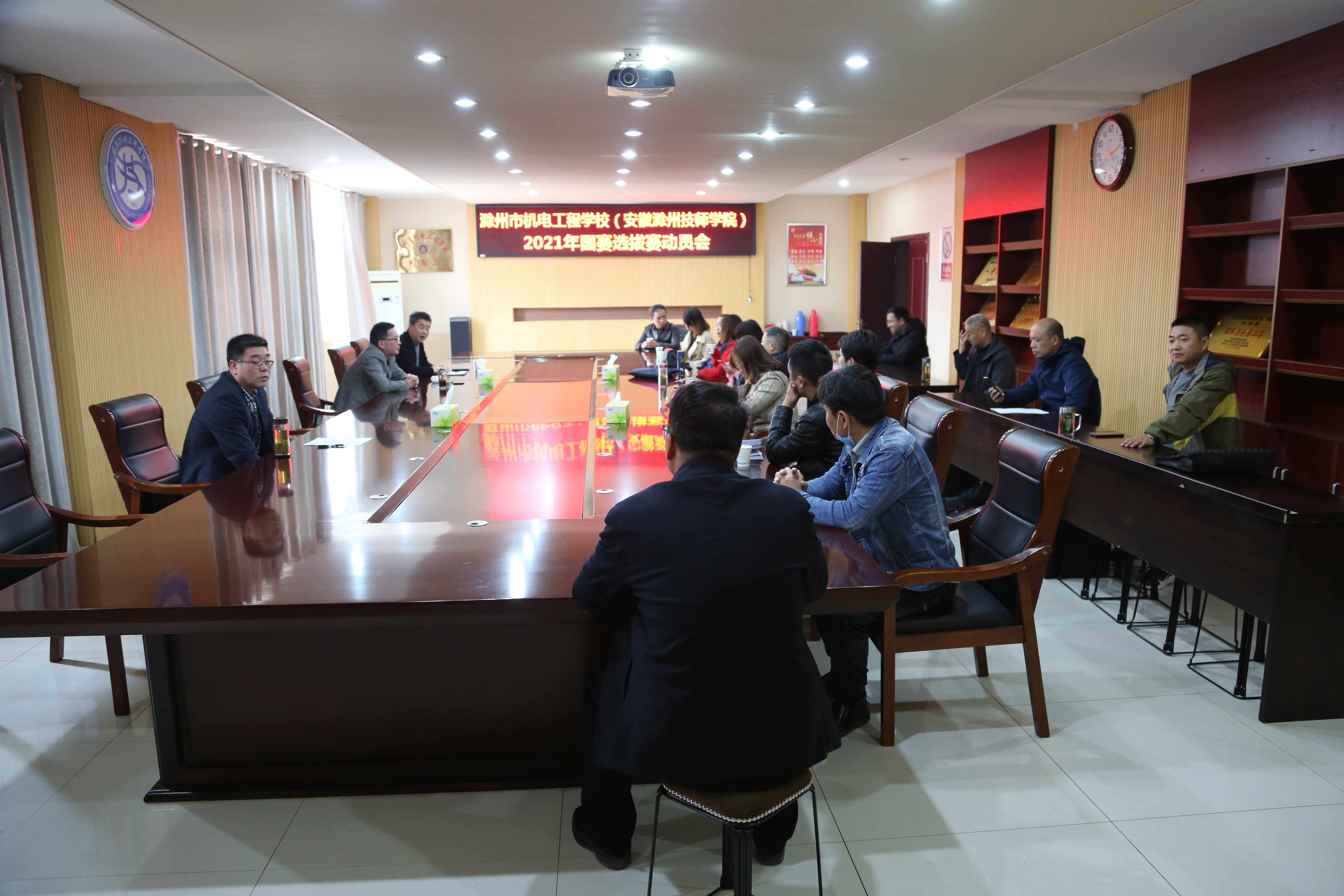 4月12号,学校在综合楼306会议室召开2021年安徽省国赛选拔赛工作会议,校党委委员、副校长湛承鲲,实训中心主任赵开江、副主任李志俊及相关系部主任和参赛项目指导教师参加会议。会议由赵开江主持。