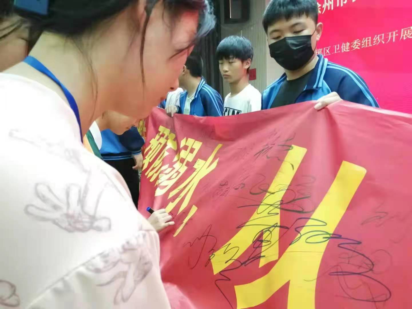 最后,全体学干在“安全第一 珍爱生命 预防溺水 从我做起"承诺条幅上郑重签名。