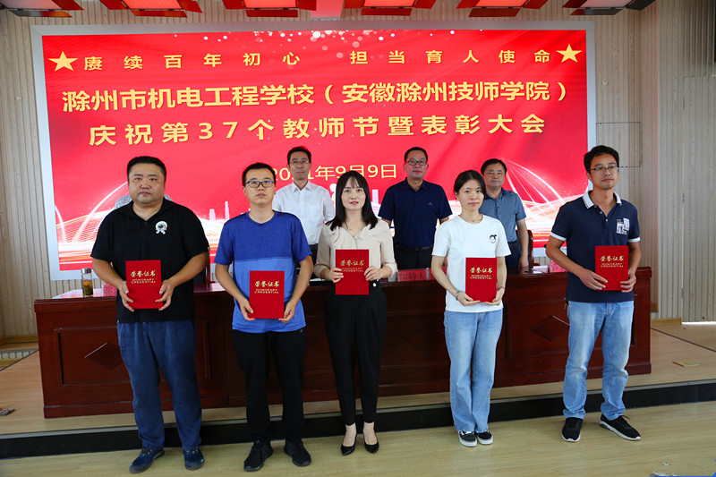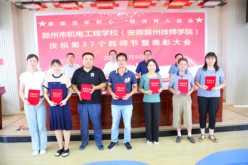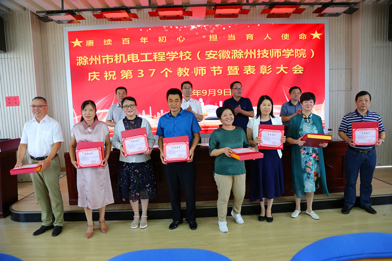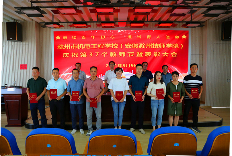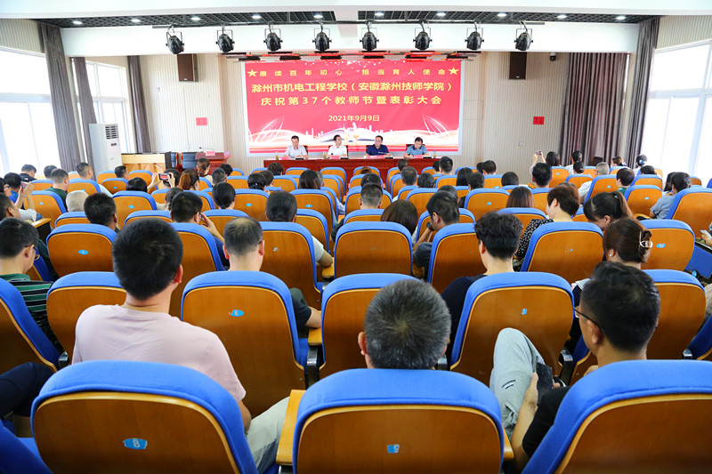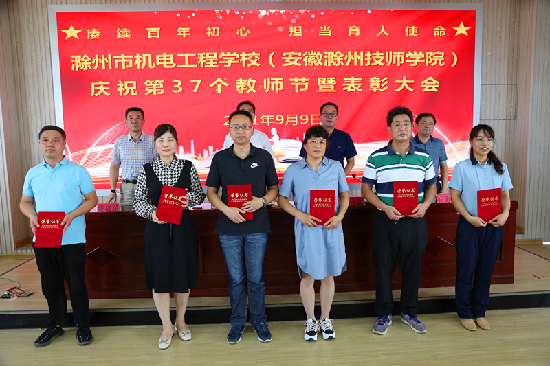 大会在奏唱国歌声中拉开帷幕。张福兴首先宣读了《关于向从教满三十周年教师颁发纪念奖的通知》和学校2020/2021学年度优秀教师、优秀班主任、先进教育工作者、师德师风标兵表彰决定。卢万祥宣读了滁州市中小学优秀班主任、滁州第三届“滁州最美教师”评选结果,我校夏美银老师获评“滁州市中小学优秀班主任”、顾冉老师获评“滁州最美教师”。