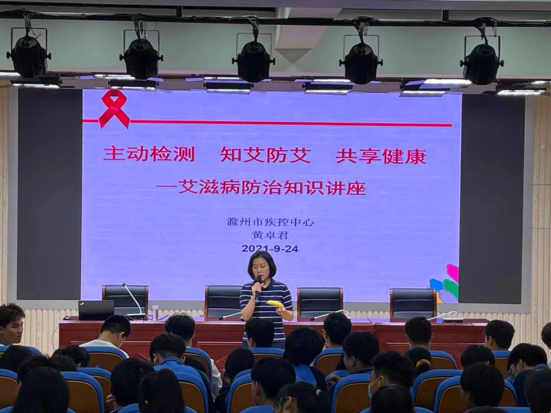 活动邀请市疾控中心的黄卓君科长,给同学们介绍了艾滋病的病因、传播途径、危害及如何预防等方面的知识,引导学生分析为什么有些人会通过这些渠道染病,使学生认识到养成良好健康生活习惯的重要性,减少和避免危险性行为,不到不正规的医疗场所打针、输液,不与他人共用牙刷等。同时不要过度紧张,握手、进餐、拥抱等正常的社交活动一般不会传染艾滋病。不惧怕、不歧视艾滋病感染者。