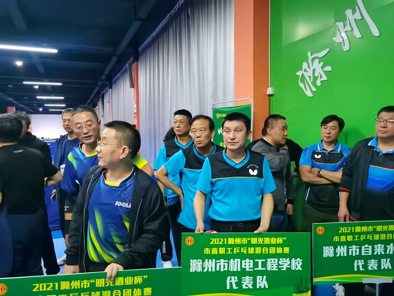 激情燃烧的时刻在“碧云天,黄叶地,秋色连波”的日子里。我校积极组队参加滁州市“明光酒业杯”市直职工乒乓球混合团体赛。赛事于2021年10月15日上午在滁州市体育馆拉开了帷幕。本次比赛共21支队伍参加比赛。