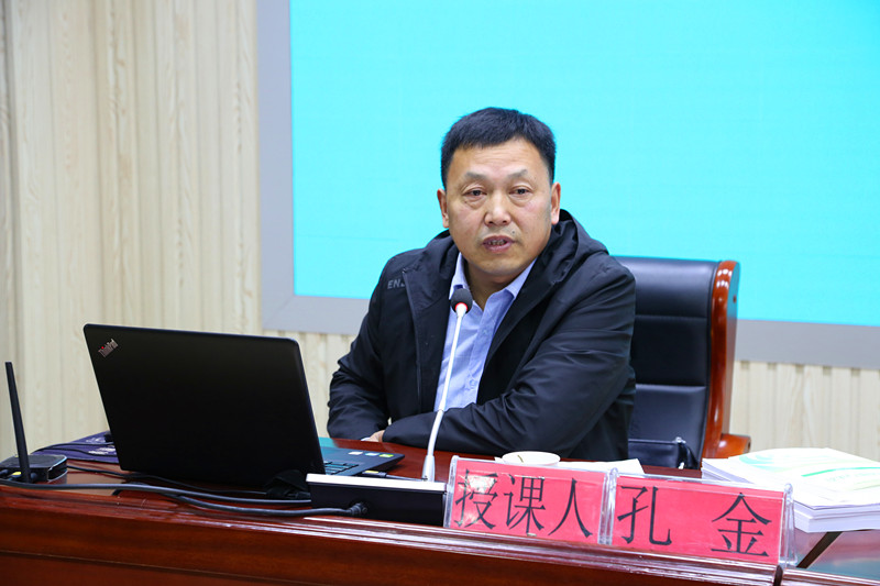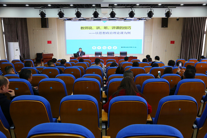 开班仪式结束后,滁州职业技术学院马克思主义学院副院长孔金副教授为全体思政课教师作了题为《教师说、讲、听、评课的技巧—以思想政治课为例》的专题讲座。