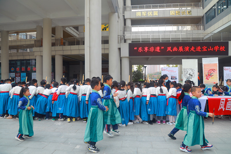 此项凤画大型传承活动,自当日起至12月9日,将陆续邀请当地6位非遗传承人、3位凤画传承教师和几十位凤画社团志愿者分别前往实验小学、永阳学校、杨子路小学、永乐小学和醉翁小学等10所中小学,深入开展凤画进校园活动。