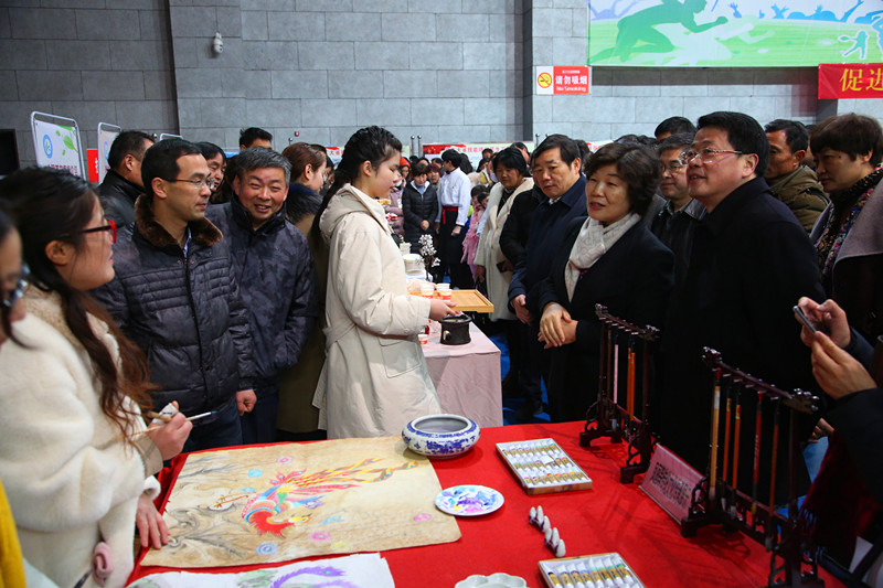 人力资源和社会保障部副部长张义珍、副省长杨光荣等一行人在活动现场与我校工作人员亲切交谈。询问并了解我校传承、保护当地非物质文化——凤画遗产等方面情况,对我校突破职教发展所需,发挥传承优势,为当地培养高素质技能人才点赞。
