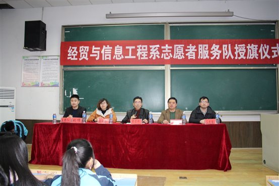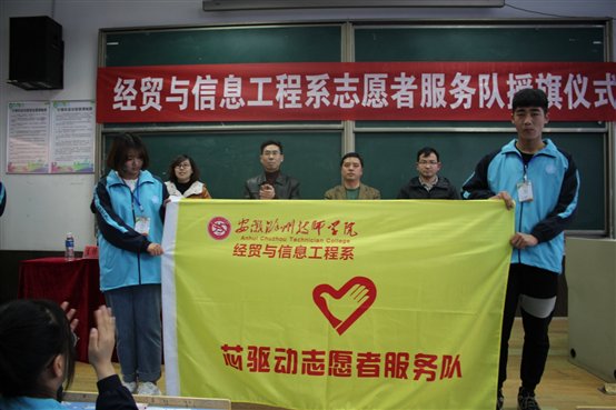 3月12日下午,经贸与信息工程系在楼阶梯教室举行“芯驱动”志愿服务队授旗仪式。