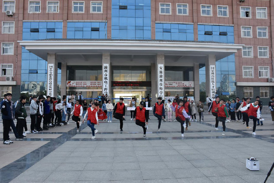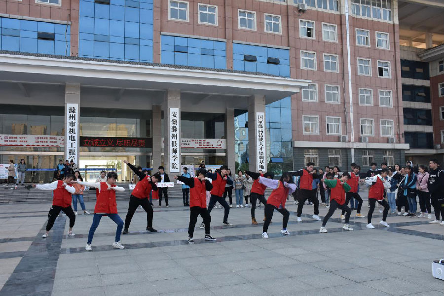 3月25日下午,校社团20余名学生以“快闪”的方式宣传雷锋精神,组织学生在校园行政楼广场播放歌曲《学习雷锋好榜样》,伴随着音乐节奏,吸引了很多学生驻足观看。通过动感的舞姿舞动出了青春正能量,绽放出了雷锋新异彩,现场气氛空前高涨。当音乐结束,参与活动的同学们默契般的精彩收尾,瞬间又随着人群而去。