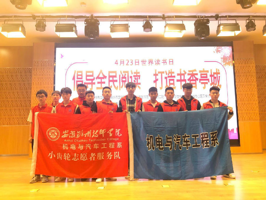 为深入贯彻习近平总书记在党的十九大报告中提出的坚定文化自信,推动社会主义文化繁荣兴盛这一使命要求,进一步巩固我市文明创建成果,培育和践行社会主义核心价值观,传承和弘扬中华优秀传统文化,在世界第24个读书日即将到来之际,滁州市图书馆,滁州市心理学会联合安徽滁州技师学院机电系志愿者分会的同学们扎实推进“书香满亭城”全民阅读活动,正式拉开我市全民阅读活动的序幕。引导和帮助更多亭城市民养成阅读习惯,把滁州建设成为一座会读书的城市,让读书点亮生活。