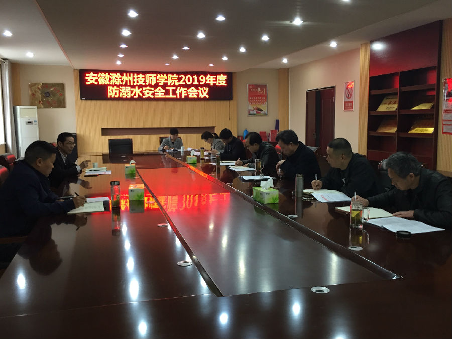 张友传传达了《关于坚决防范学生溺水事故发生的通知》,并就有关工作做了详细说明。学生处方芳老师解读了《安徽滁州技师学院2019年预防溺水教育活动方案》。会议还就学校安全工作的其它事项做了安排。