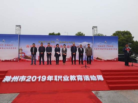 5月6日,“滁州市2019年职业教育宣传活动周”启动仪式在天长市举行,此次职教宣传活动周将围绕“迎祖国70年华诞,展职教时代风采”这一主题,宣传展示新中国成立70周年特别是十八大以来,职业教育发展的成果、特色、亮点和典型经验,加深人民群众对职业教育的了解和支持。市教体局副局长王莉、我校党委书记、校长汪上、市教体局职成科负责人蒋新华出席启动仪式。