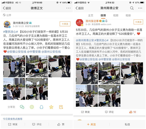 “如果当时老人没有被及时救上岸,会有生命危险。”当日出警的滁州市龙蟠派出所姚警官说,他对这三名学生的行为表示了肯定,“这几位年轻小伙在别人遇到困难时,能够挺身而出,这种见义勇为的行为值得赞许。”