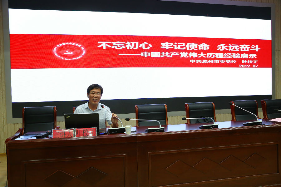 为深入学习贯彻习近平新时代中国特色社会主义思想和党的十九大精神,扎实开展“不忘初心、牢记使命”主题教育,7月9日上午,我校组织开展了全校党员干部党史教育日活动,活动邀请了市委党校校委委员、教务处长叶校正教授作专题党课报告。