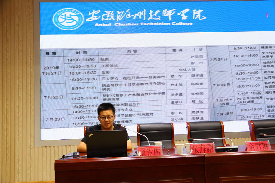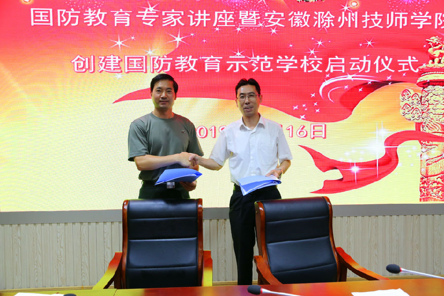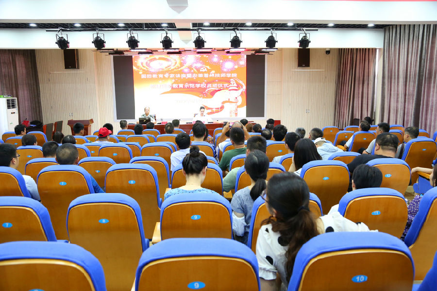 为深入贯彻落实立德树人根本任务,提升我校教职工学生工作能力和水平,促进学生全面发展和学校内涵发展,8月15日-16日,学校在土木水利楼三楼报告厅举行了2019年度暑期学生工作校内培训暨安徽滁州技师学院创建国防教育示范学校启动仪式。国防教育专家黄培义、全国知名德育专家邹六根、滁州市民政局、滁州市退役军人事务局、南谯区退役军人事务局、南谯区人武部、琅琊区退役军人事务局等有关领导、江苏大联海运科技有限公司董事长凡杰、学校党委书记、校长汪上、党委副书记、纪委书记张福兴、党委委员、副校长余君琳出席会议,学校中层以上干部及有关行政人员、班主任等学管人员参加会议。