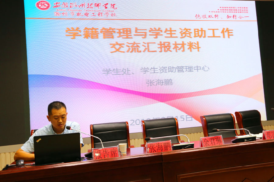 学生处学生资助中心张海鹏作了“学生学籍和资助工作为主题的讲座,他通过图文并茂、示范操作的形式对学生学籍和资助工作做了详细讲解,使大家清晰掌握了此项工作的整个流程和注意事项。