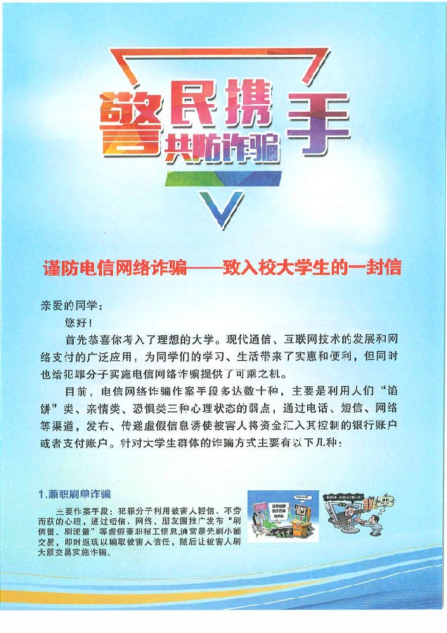 谨防电信网络诈骗——致入校学生的一封信