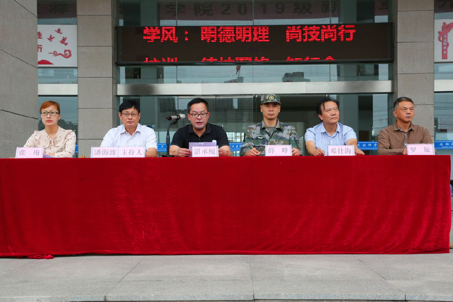 9月2日,2019级新生军训开营仪式在学校南、北校区同时举行。学校党委副书记、纪委书记张福兴,党委委员、副校长湛承鲲、余君琳、潘海波、中国人民解放军66220部队官兵及全体新生参加了开营式。开营式分别由张福兴、潘海波主持。