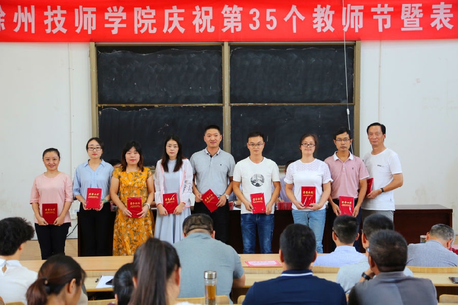 会议在雄壮的奏唱国歌声中拉开了序幕,全体教职工齐唱国歌,欢度自己的节日。会上,湛承鲲副校长宣读了学校表彰文件,校领导为40名优秀教师、优秀班主任、先进工作者、技能大赛工作先进集体、先进个人颁奖。优秀教师代表欧娟娟、优秀班主任代表徐礼娟、师德师风标兵代表郑贤龙,在发言中分享了他们从教多年的经验和感悟,对学校为他们提供的发展平台和支持鼓励表示衷心的感谢。表示,在以后的工作中将一如既往把教育教学作为挚爱的事业,怀揣一颗关爱之心、责任之心,不断提高自己的业务素质和教学水平,以渊博的知识教育学生,以爱岗敬业的精神感动学生,努力为学校的教育教学工作再上台阶作出更大的贡献。
