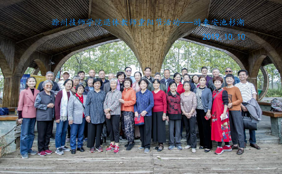金秋十月、丹桂飘香,岁岁重阳,今又重阳。适逢祖国七十华诞,为弘扬敬老爱老的中华传统美德,营造关爱老年群体的浓厚氛围,在重阳节之际,根据学校党委意见,组织人事处精心安排,组织退休职工前往来安池杉湖湿地公园一日游,老同志们积极参加活动,一行50余人在湿地公园乘船游览了荷塘、池杉林,观赏了飞鸟水禽,享受着清新的空气,在细雨蒙蒙中游览、漫步、交谈,感悟“绿水青山就是金山银山”的真谛,享受保护环境、生态治理的成果,更加激发了老同志们的爱国情怀,享受生活的美好!