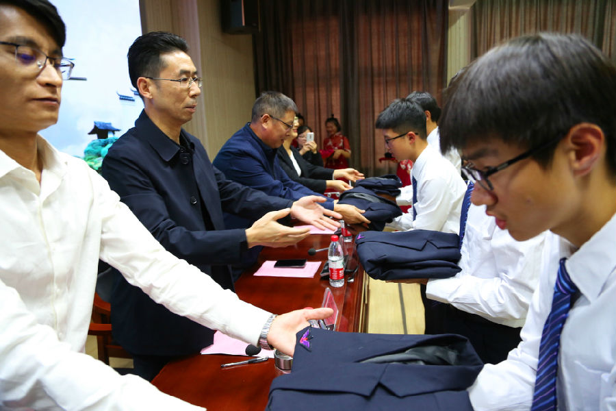 张梅对新授服的同学提出要求和希望,希望同学们立足更高起点,勤奋学习,刻苦钻研,争做一名“德技双修 知行合一”的优秀学生。