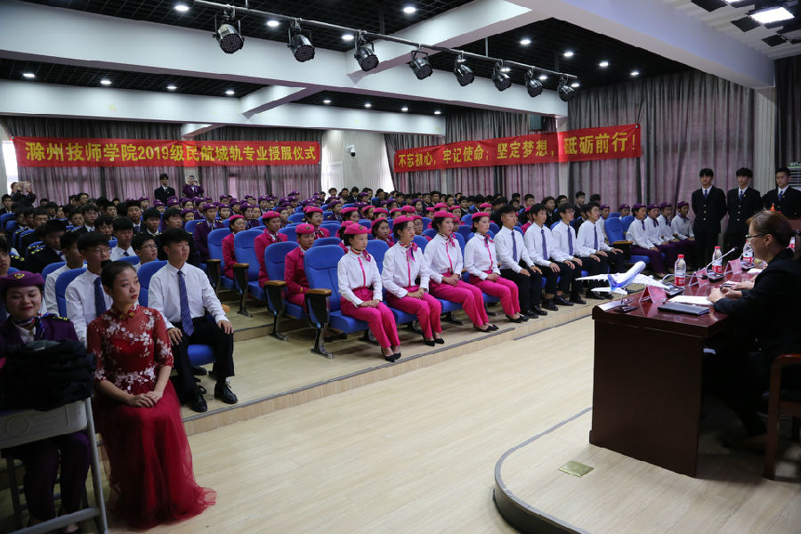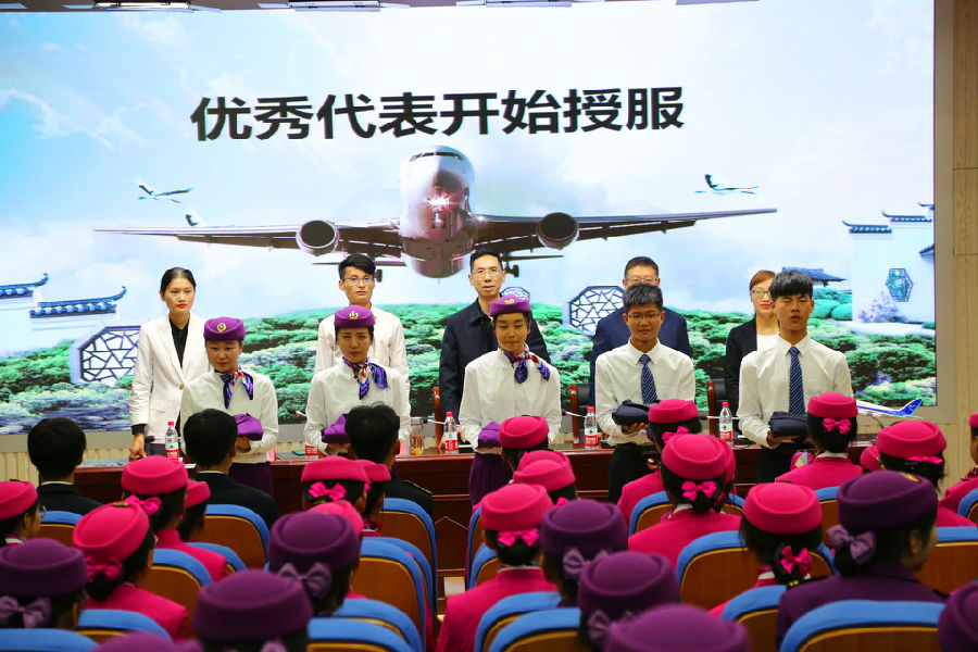 民航城轨专业校区主任汪远徽为同学们讲解了制服的意义,强调了授服仪式的重要性:制服是一种行业文化内涵的有效载体,是专业特色的重要元素,凝聚着专业的标准与规范,希望同学们在今后尊重热爱自己的制服,努力学习,回报社会。
