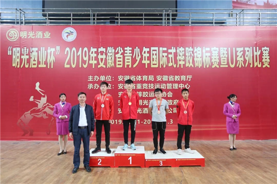 日前由安徽省体育局、安徽省教育厅主办,安徽省重竞技运动管理中心、安徽省摔跤协会、明光市人民政府承办的“明光酒业杯”2019年安徽省青少年国际式摔跤锦标赛暨U系列比赛。我校学生代表滁州市摔跤队荣获佳绩,其中包立鹏荣获古典式摔跤青年组51kg级季军、樊越荣获古典式摔跤甲组67kg级季军,李照毅荣获古典式摔跤甲组87kg级季军、段成星荣获古典式摔跤乙组67kg级季军、黄雨顺荣获古典式摔跤甲组87kg级第五名、王子轩荣获乙组55kg第五名、王瑞旭荣获55kg级第七名的好成绩。