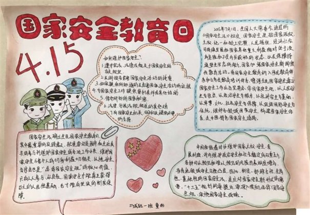 通过学习,广大师生了解了自己在国家安全中应当担负的责任和义务,提升了国家安全意识。在学习中,各班主任结合疫情期间广大医护、警察、社区等一线人员,坚守岗位,舍小家顾大家,以实际行动捍卫国家安全的事迹,和同学们一起感受了中国力量、中国速度与中国精神,激发了大家的爱国主义情感和民族自豪感。“线上班会”后,结合我系学生的专业特点,各班还布置了安全日手抄报、海报等活动,以此来进一步加强同学们的国家安全防范意识和自护自救能力。