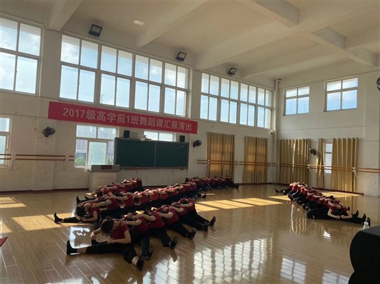6月19日上午,学校社会文化艺术系2017级高学前1班在四楼舞蹈房进行毕业舞蹈汇报表演,校党委书记、校长汪上,党委副书记、纪委书记张福兴,校党委委员、副校长余君琳,以及教务处、社会文化艺术系的负责人、教师代表一起观看了汇报课表演。表演由17高学前1班舞蹈课老师朱婷婷主持。
