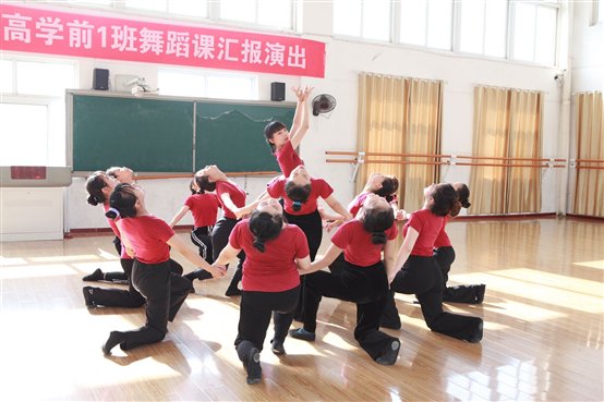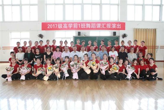 学生们舞蹈功底扎实,将课程学习中体会到的每一个动作与精髓表达得淋漓尽致,以演出的形式将大家对舞蹈的热爱与艺术邂逅的创作火花完美呈现,赢得了领导和老师们的阵阵掌声。演出最后,17高学前1班全体同学献唱《听我说谢谢你》并与领导和老师们合影留念。