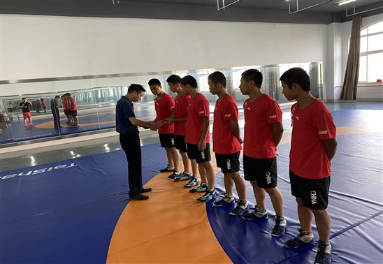 汪上关切地询问了同学们暑期的训练和生活情况,感谢教练员和同学们抗高温、战酷暑,为了学校的荣誉刻苦训练、勇于奉献的精神,并祝愿摔跤队同学们在未来比赛中取得优异成绩。他叮嘱教练员和同学们在训练中切实做到安全第一,注意做好防暑降温措施,同学们要劳逸结合,合理安排训练和休息时间,保证暑期训练达到预定目标。