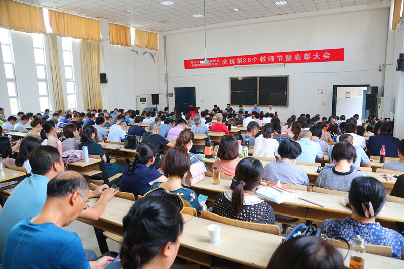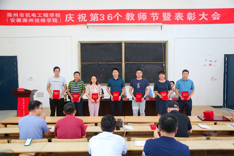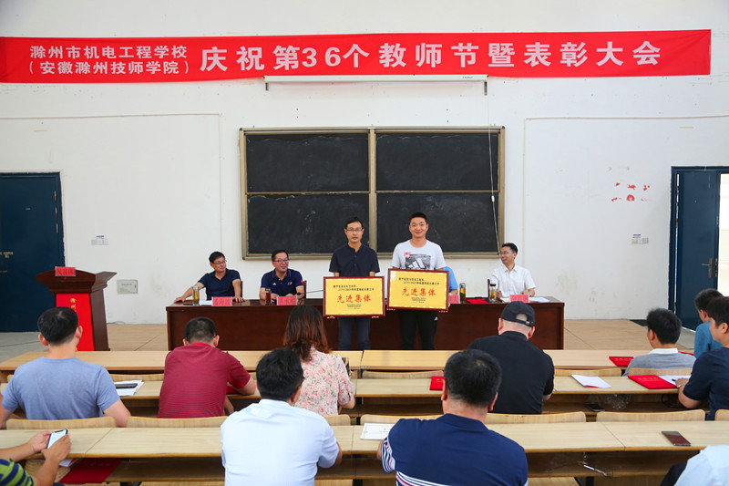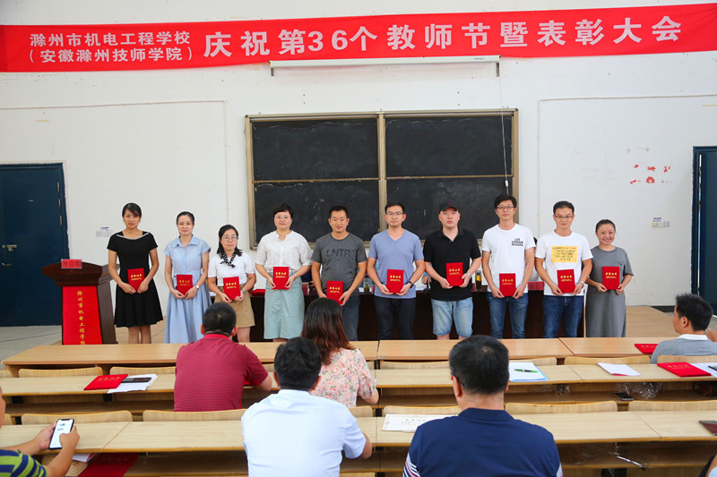 校党委书记、校长汪上代表校党委和校行政向在各个工作岗位上辛勤耕耘、无私奉献的全体教职工致以节日的问候和崇高的敬意!向全体获奖者和集体表示热烈的祝贺。并以“立德树人奋进担当,教育脱贫托举希望”的教师节主题,对全体教职工提出三点要求;一要坚守初心担使命,要切实以习近平总书记关于教育的重要论述为指导,坚守教育初心担负起立德树人的使命,为中国特色社会主义建设培养又红又专的接班人,促进学生更好的成才成长。二要爱岗敬业讲奉献,教师的岗位是平凡而又伟大的,国家的发展、民族的进步、家庭的幸福、个人的成长,都离不开教育和教师,所以爱岗敬业讲奉献是一个教师应具备的优秀品质,我们要带头弘扬社会主义道德和中华传统美德,用自己的模范行为影响和带动学生。三要创新改革提能力,教师要有更多的知识储备,不断创新教育教学方式和方法,才能胜任教师这个职业,要不断的学习才能适应新时代职业教育发展的需要,才能满足新时代青年学生技能成才的需要。并强调,2020年是学校“十三五”规划收官之年,是“十四五”规划的谋划之年,是学校事业发展的关键一年,学校的发展离不开我们大家的共同努力,希望全体教职工奋力谱写市内前茅和省内一流特色高水平职业学校,共同开创滁州市机电工程学校(安徽滁州技师学院)灿烂美好的明天!
