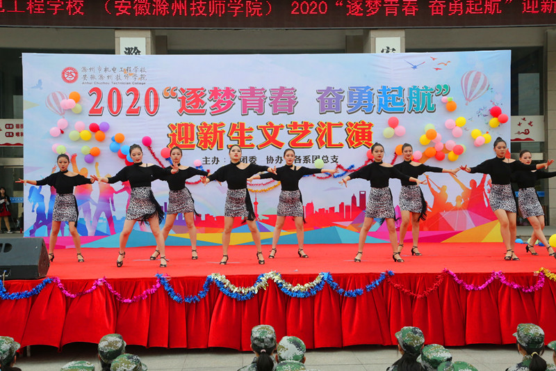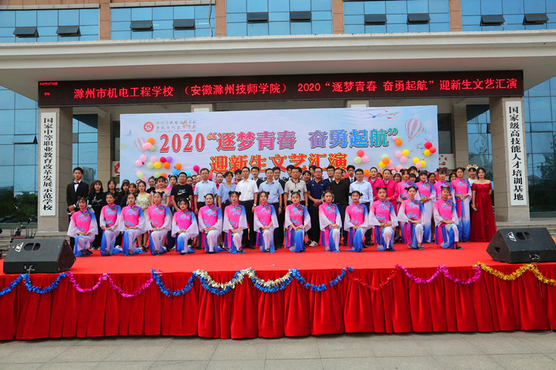 多彩金秋,美丽校园,9月28日下午,滁州市机电工程学校(安徽滁州技师学院)2020迎新文艺汇演在校行政楼广场如期举行。本次演出由校团委主办,各系团总支协办。学校党委书记、校长汪上,党委副书记、纪委书记张福兴,党委委员、副校长余君琳、湛承鲲,相关职能处室、系部负责人与2000余名20级新生共同观看了演出。