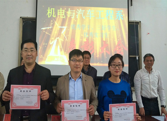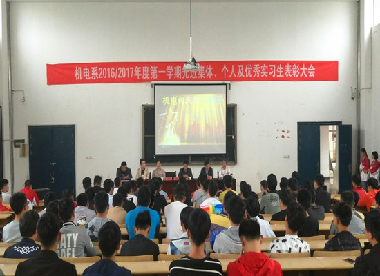 为进一步推动机电系学风建设,发挥优秀学生的示范引领作用,营造励志感恩、积极向上的学习氛围,2017年5月15日,在教学楼阶梯教室隆重召开了机电与汽车工程系2016/2017学年第一学期先进集体、优秀个人及2017年优秀企业实习生表彰大会。学院党委委员、副院长潘海波参加了会议。招生就业处负责人王从涛,机电系负责人江涛、罗旋,系团总支负责人黄芸,系教学秘书俞锋以及200名学生代表参加了大会,会议由黄芸主持。