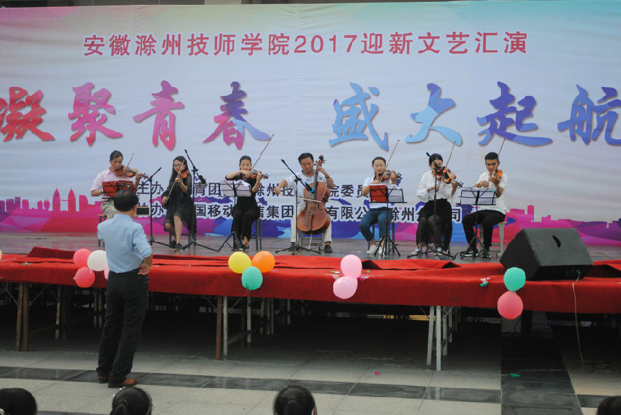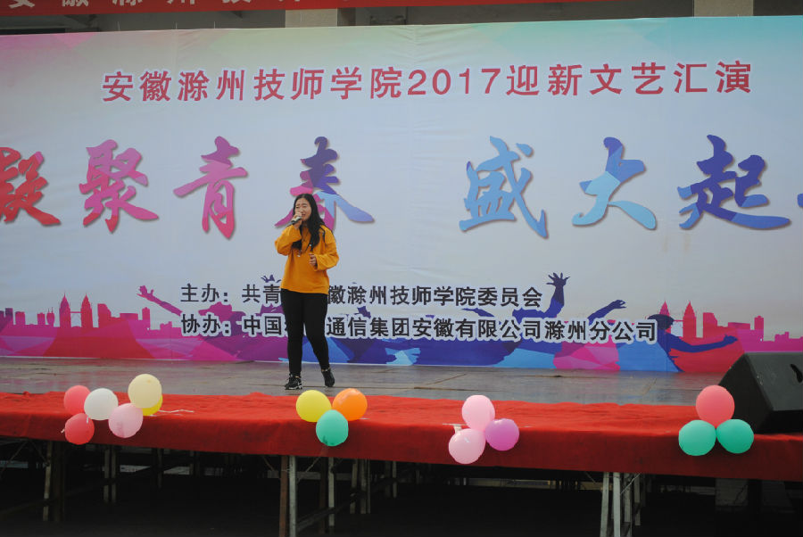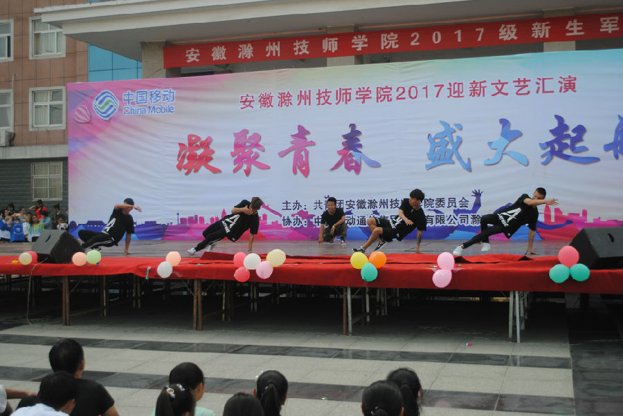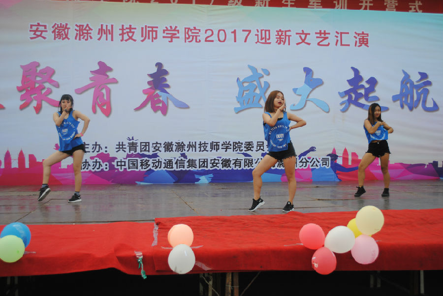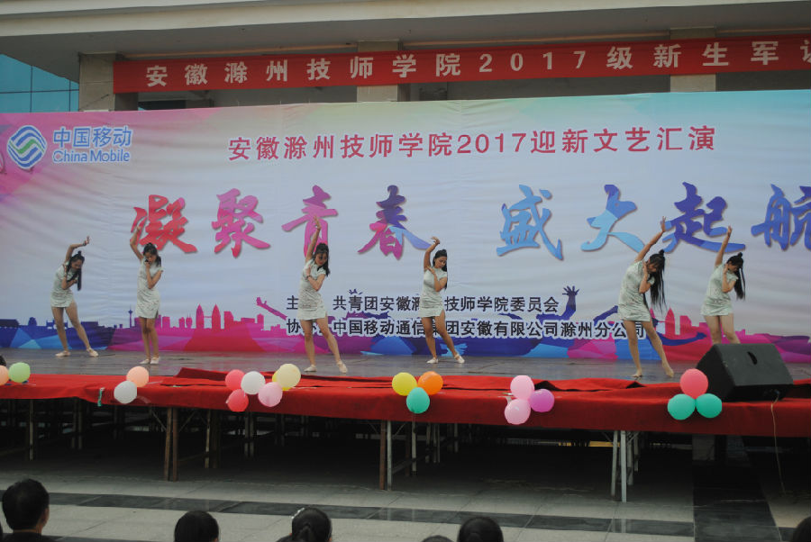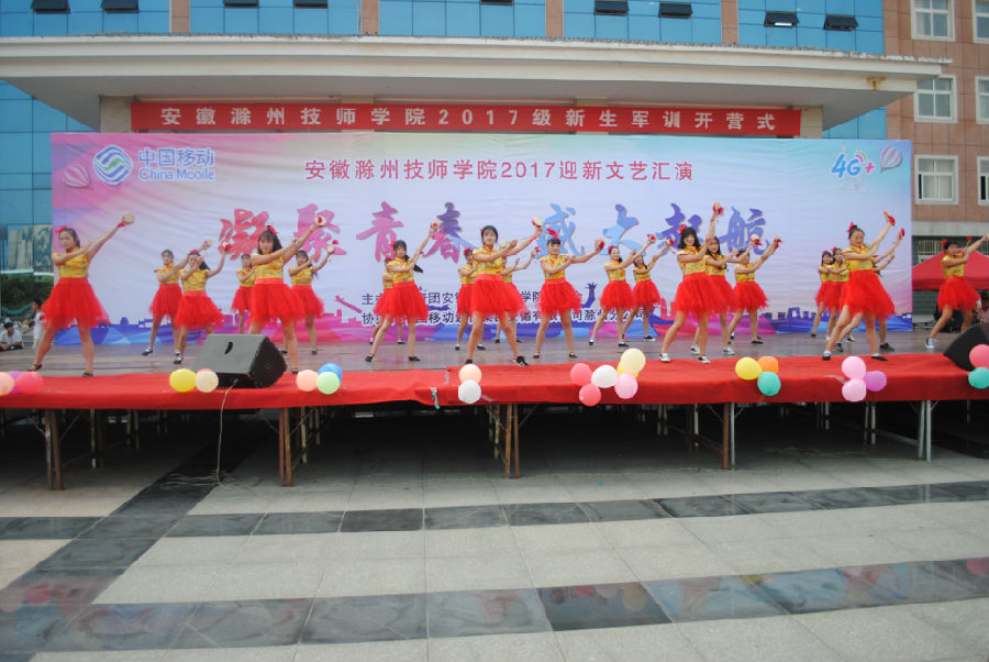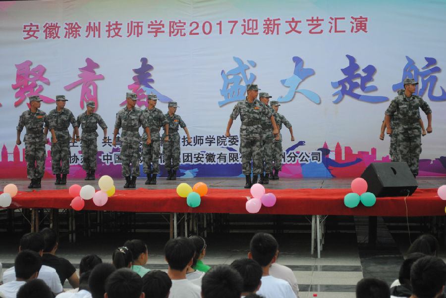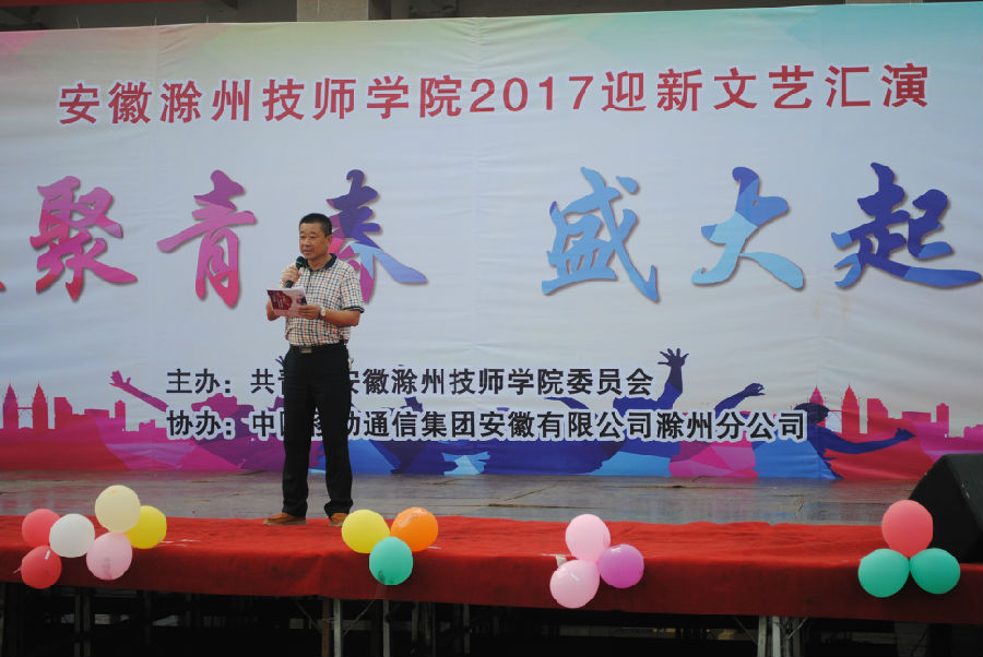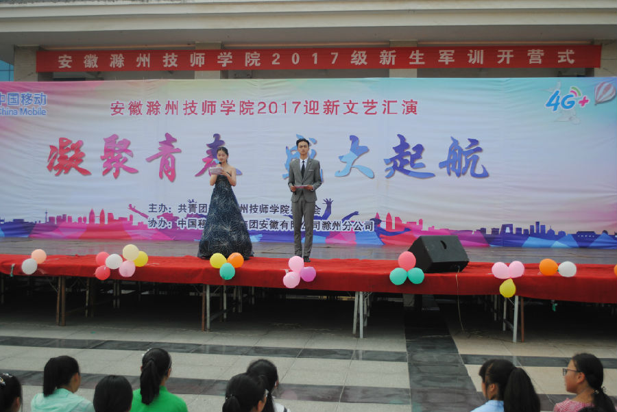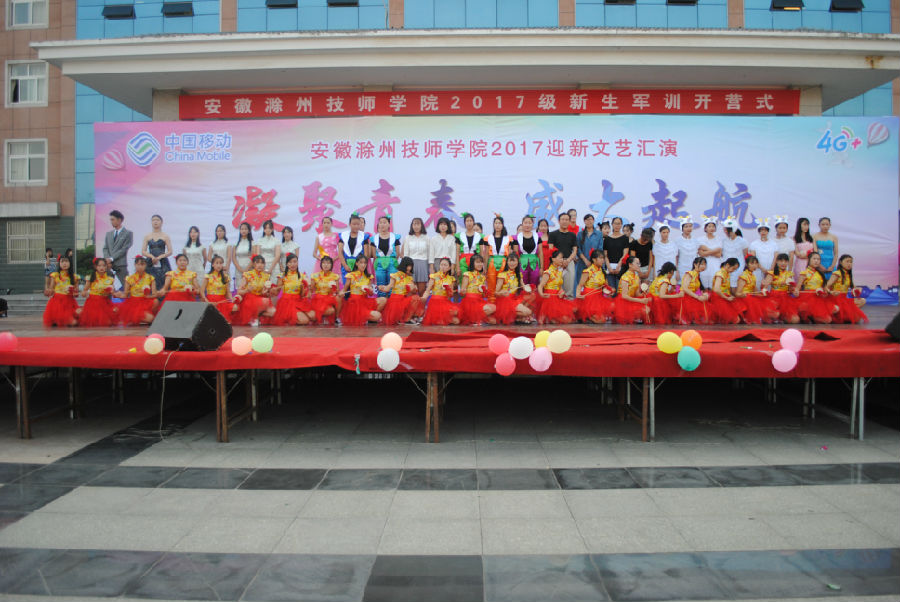 2017年9月12日下午,为迎接2017级新生的到来、展现技师学院学子的别样风采,学院“凝聚青春、盛大启航”迎新文艺汇演在南校区行政楼广场如期举行。本次汇演由院团委主办,中国移动安徽有限公司滁州分公司协办。学院院长、党委书记汪上,党委副书记、纪委书记张福兴,副院长、党委委员湛承鲲、余君琳、潘海波,中国人民解放军66220部队军官解世军以及相关职能处室、系部负责人与学院2017级新生一同观看了演出。