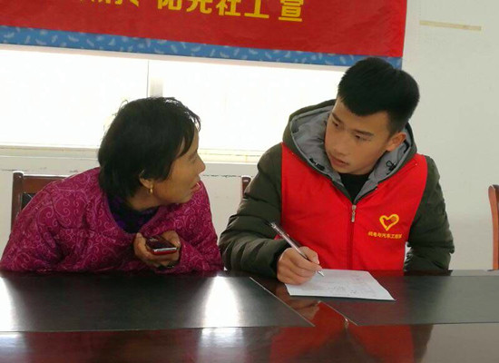 下午,机电系志愿者和阳光社工在马厂镇文化站给留守妇女进行义诊和合理饮食科谱讲座,并向参会的留守妇女表达了爱心。来自滁州中医院的社工现场给留守妇女进行了体验,发现有慢性病的患者,嘱咐她们要注意控压,合理。