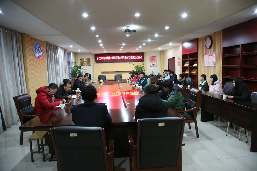为加快学院发展和建设,畅通同学们参与民主治校的渠道,广泛了解同学们在学院学习、生活等方面存在的问题,倾听同学们对学院发展、建设、教育、管理和服务等方面的意见和建议,及时帮助同学们解决学习、生活、成长、就业等方面所遇到的各种困难,以便更好服务同学们,12月21日下午,学院在综合楼306会议室召开学生代表座谈会。学院院长、党委书记汪上带领办公室、教务处、学生处、总务处和团委负责人与20名学生代表表进行座谈。座谈会由汪上主持。