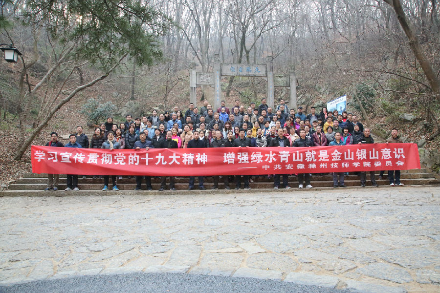 根据《中共安徽滁州技师学院委员会关于扎实推进党的十九大精神学习宣传贯彻工作的实施方案》的工作安排,为进一步领会习近平总书记强调的绿水青山就是金山银山,激发广大干部群众爱护环境保护环境的意识,学院工会于12月23日组织全院教职工进行了以“学习宣传贯彻党的十九大精神、增强绿水青山就是金山银山意识”为主题、培养“健康工作,快乐生活”理念的“2017年登山健身活动”。活动促进了教职工之间的交流,增强体质,营造和谐愉快的氛围。
