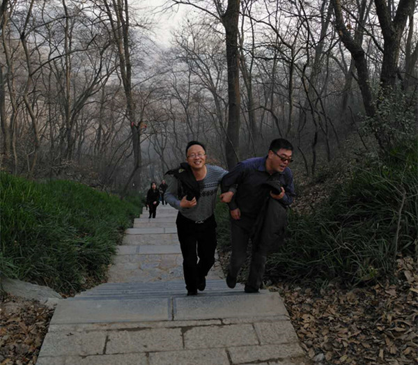 虽是寒冬季节,所有参加登山健身活动的教职工都准时来到了大门内的集合地点并做好赛前热身活动,工会负责人李善华在比赛前做了简短的活动说明并介绍了注意事项、后勤保障和医疗急救措施。比赛开始后,教职工分为4个小组(男子45周岁以上、男子45周岁以下、女子45周岁以上、女子45周岁以下、)向赛程终点冲去,比赛中大家你追我赶,南天门等候的工作人员记录下各组的名次。比赛结束后在琅琊寺前的小广场上,大家一片欢声笑语,纷纷表示,此次活动加深了同事间的感情,加快了四校间的人员了解、熟悉、融洽。在最后集体拍照时,学院党委副书记、纪委书记张福兴同志对此次登山健身活动做了总结并即兴作诗一首。