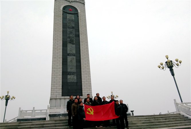 首先全体党员向烈士纪念碑三鞠躬,并向革命先烈进献了花篮。全体党员在英雄纪念碑前,举起右拳,以铿锵有力的宣誓声,重温入党誓词。